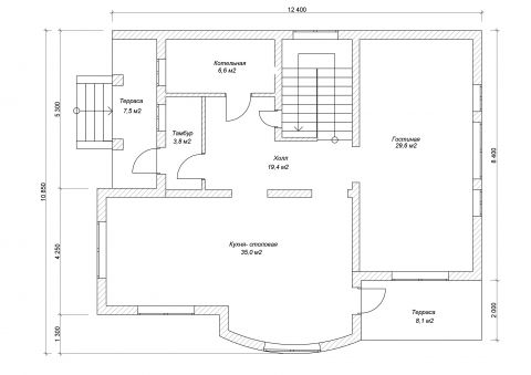 • Тип фундамента: Ленточный, перекрытый монолитной ж/б плитой