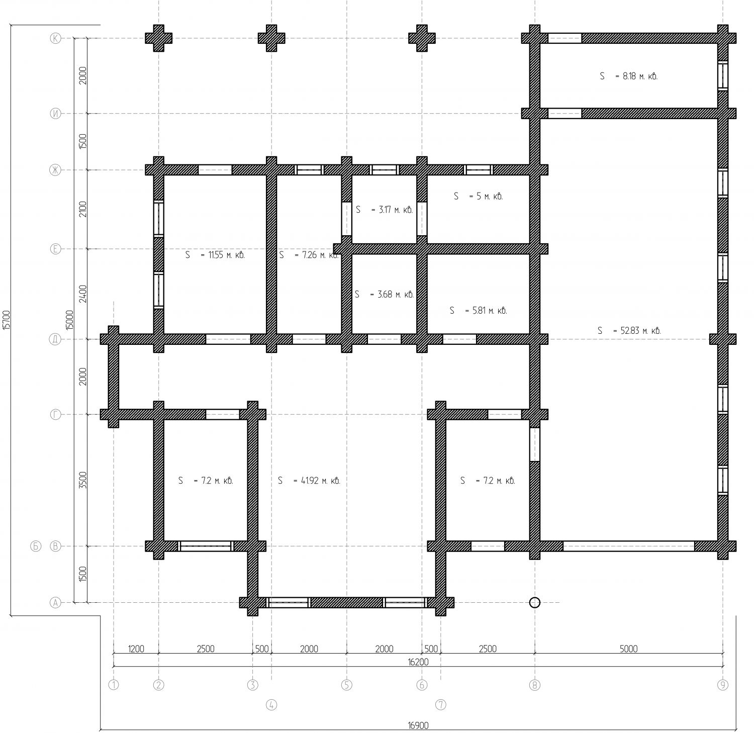 - Линейные размеры: 15.7х16.9 м