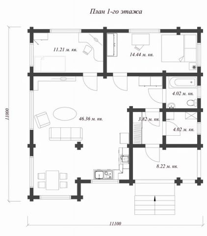 1 этаж, 3 комнаты, общая площадь 90.00 кв.м.