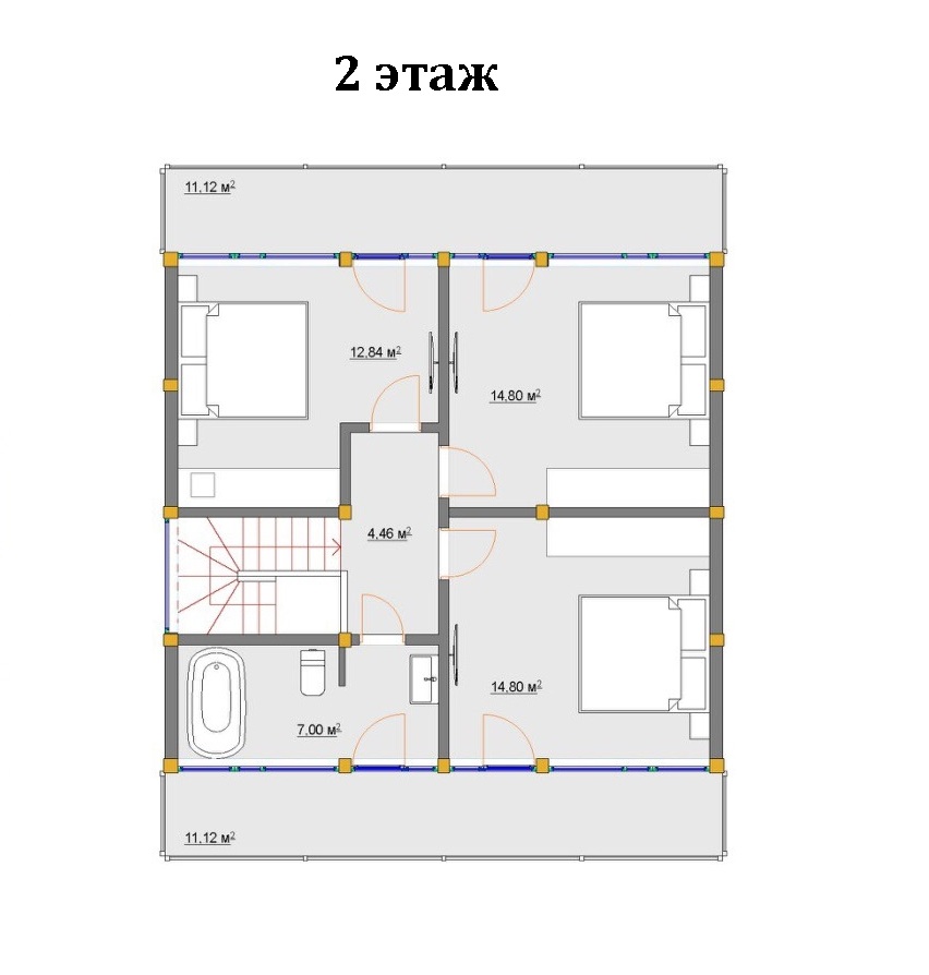 2 этажа, 4 комнаты