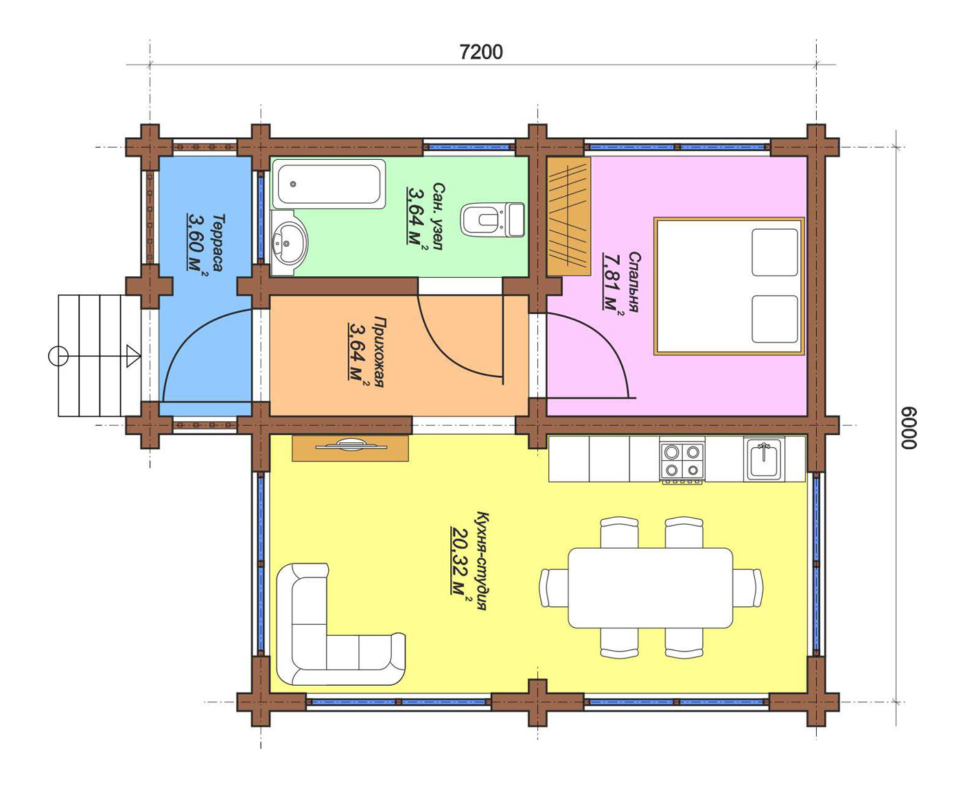 - Линейные размеры: 7.2х6м