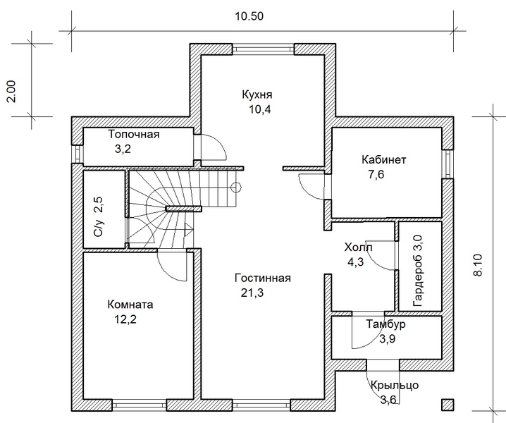 - Тип фундамента:Ленточный, перекрытый монолитной ж/б плитой