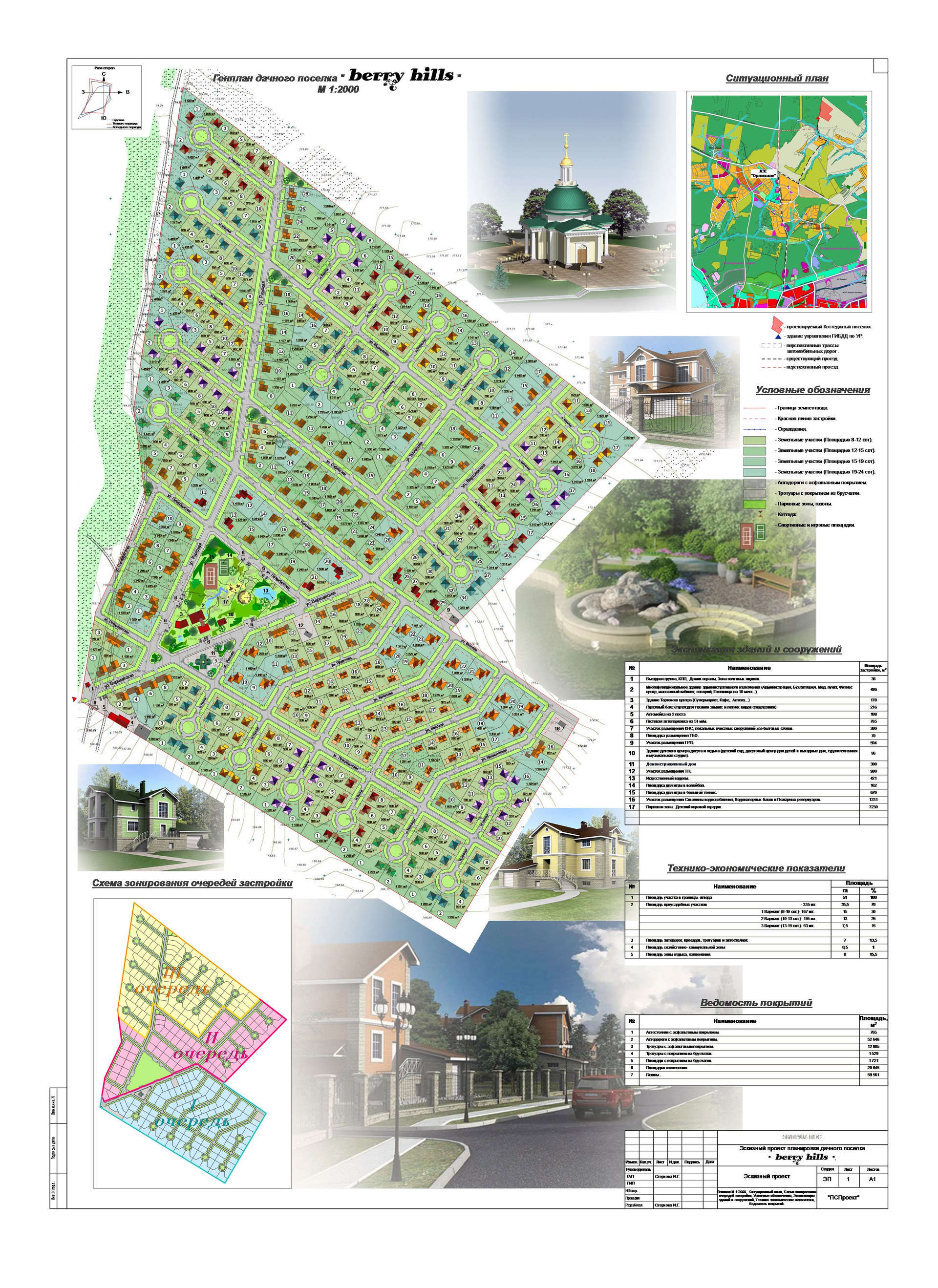 Площадь территории поселка 51 га, всего 335 участков. Поселок спланирован так, что каждые 8-12 домов образуют свой отдельный квартал. Названия улиц носят имена мировых столиц — Пражская, Лондонская, Мадридская, Берлинская и т.д.