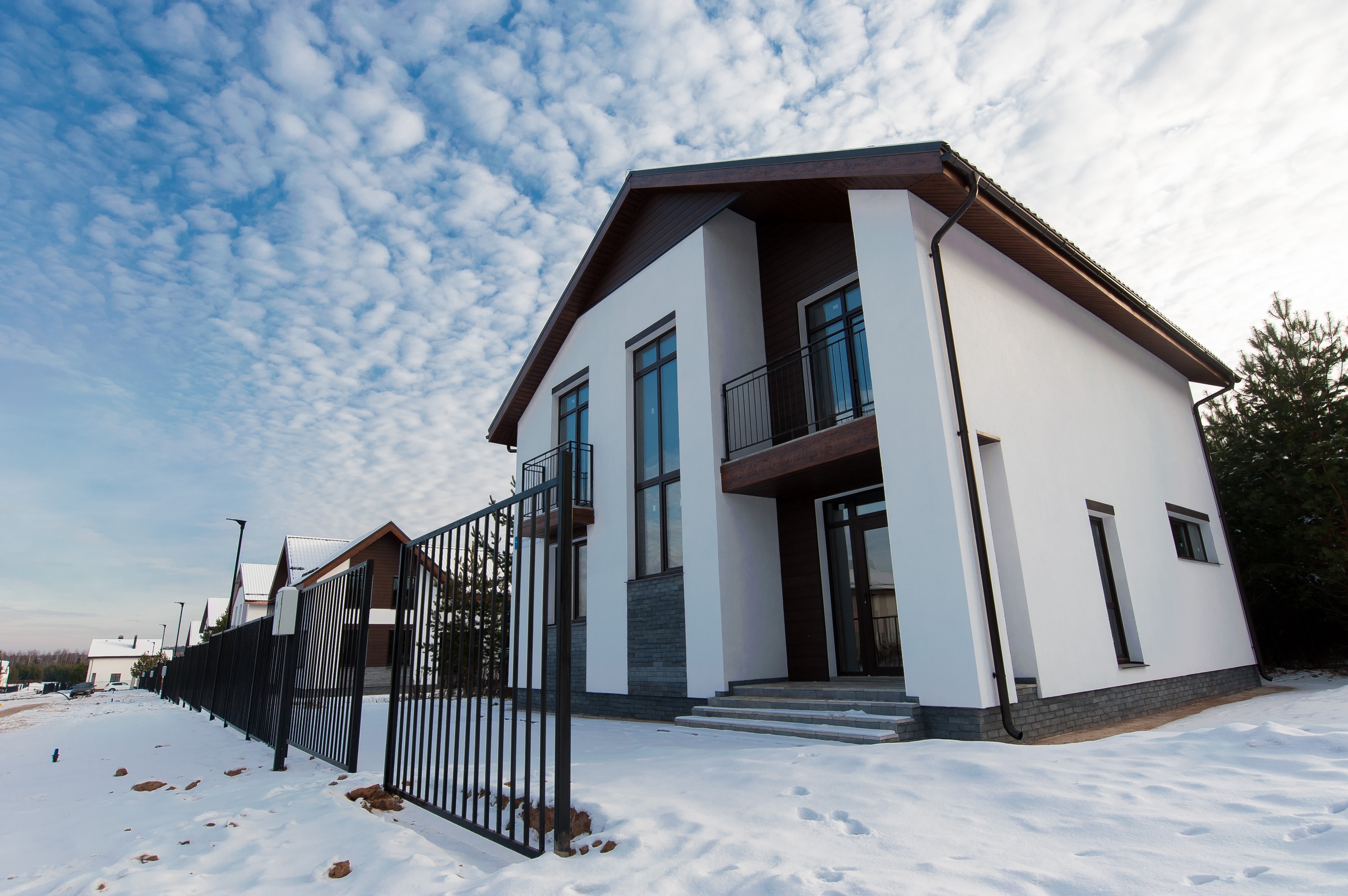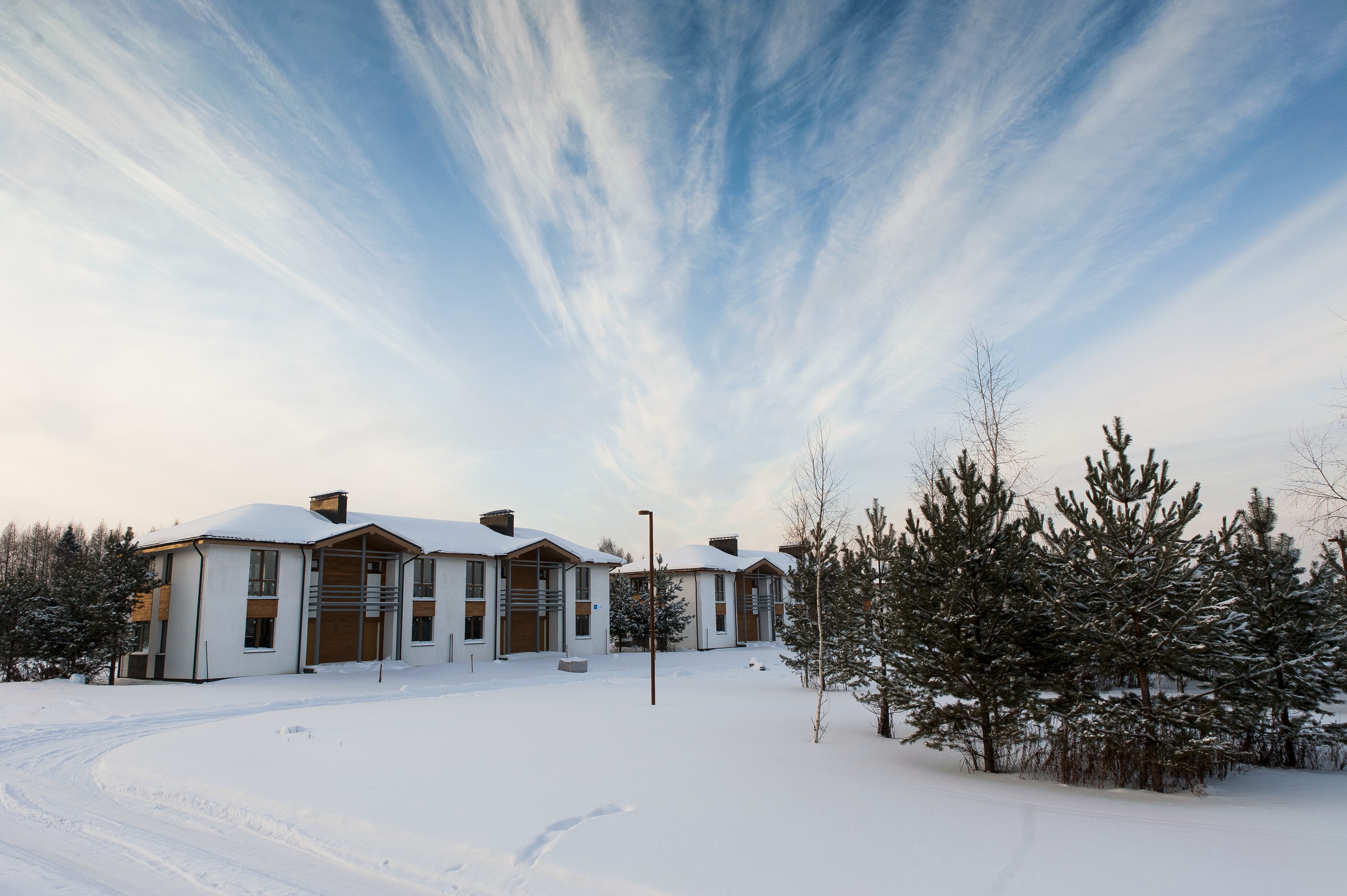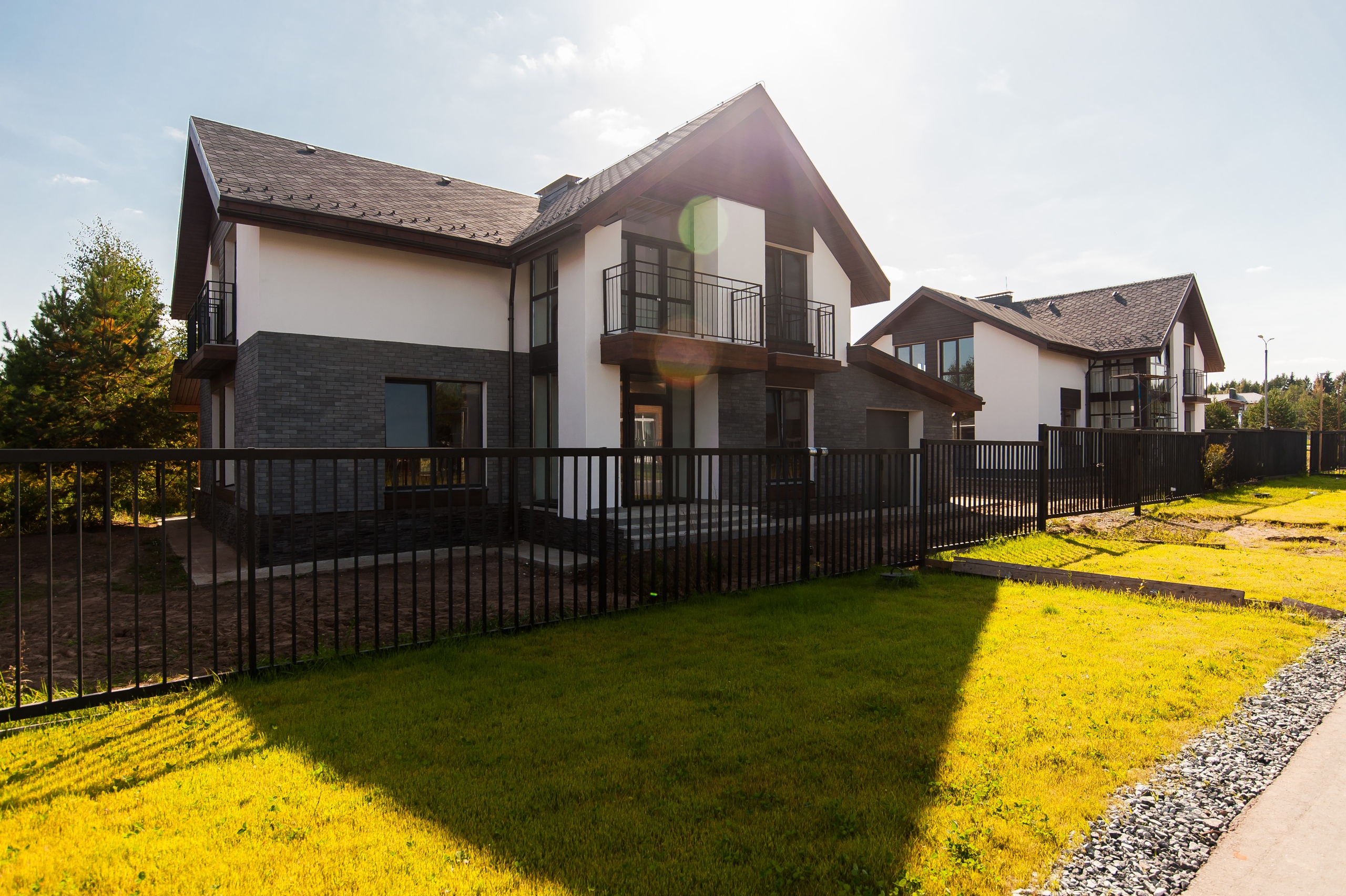 Особенность поселка «Европа» — уже построенные лаконичные стильные дома, оформленые в приятной цветовой гамме. Дома выполнены из кирпича на монолитном фундаменте, крыши утеплены и покрыты гибкой или металлочерепицей, установлены пластиковые двухкамерные стеклопакеты и металлические входные двери, фасады отделаны декоративной штукатуркой, коммуникации подведены. Кроме коттеджей построены трехэтажные многоквартирные дома и таунхаусы.
