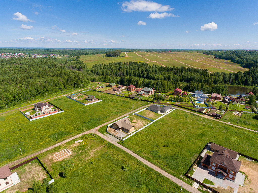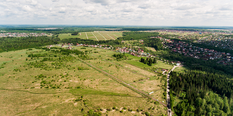 Микрорайон огорожен металлическим забором, дороги отсыпаны гравием, к участкам подведены газ и электричество.