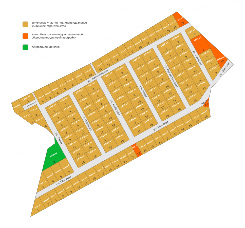 Всего в поселке 130 участков по 12 соток. Поселок застроен домами от 50 до 200 м² в одном стиле. Есть небольшое количество участков под индивидуальную застройку.