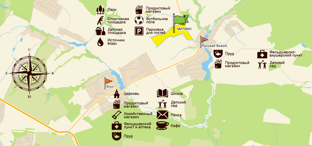 Европейская деревня «Митино» расположена на северо-востоке Ижевска, ближайшие населенные пункты — село Ягул и деревня Русский Вожой. Дорога от ГИБДД займет примерно 15 минут. На автомобиле можно добраться через СХВ, Хохряки, Славянское шоссе или Якшур-Бодьинский тракт. Общественный транспорт — автобусы № 315, № 320 и № 368.