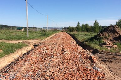 - Дороги проложены по всему поселку. Ширина дороги 4,5 м. Отсыпка щебнем.