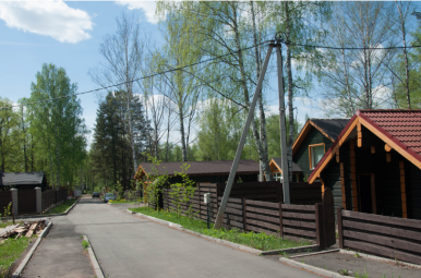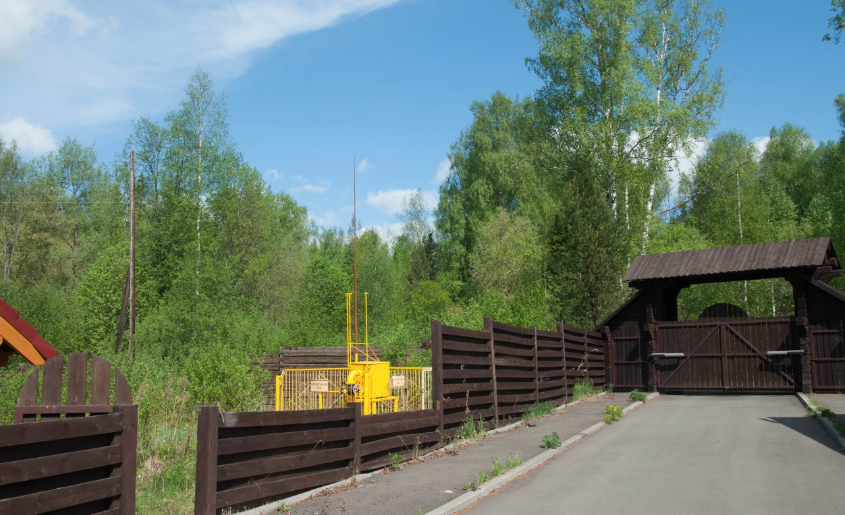 Территория поселка ограждена по периметру. На въезде контрольно-пропускной пункт, оборудованный автоматическими воротами.