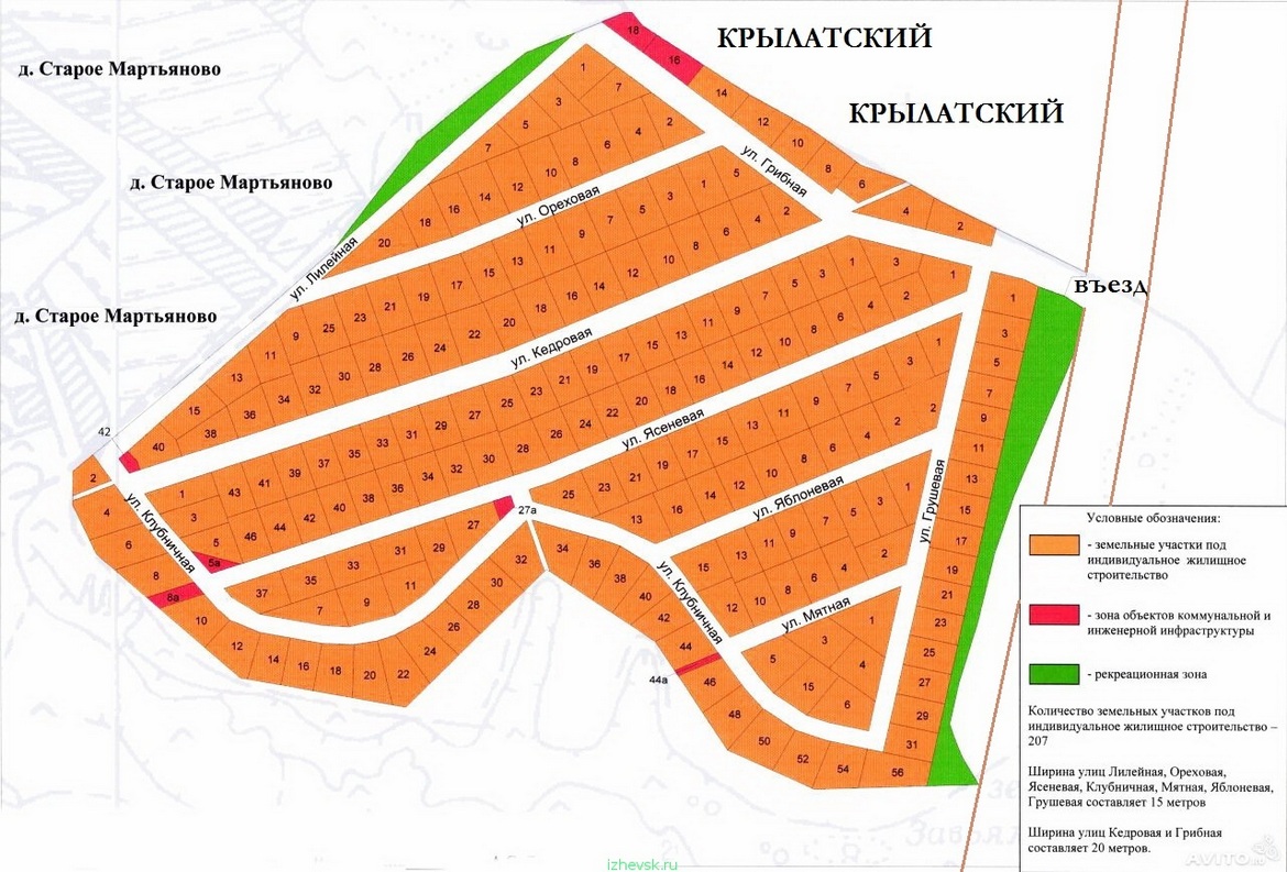 Коттеджный поселок «Новое Крылатское» — часть деревни Старое Мартьяново — находится в 8 км от границы Ижевска. Дорога из города по объездной в сторону аэропорта на автомобиле займет 20 минут. Из общественного транспорта ходит автобус № 331.