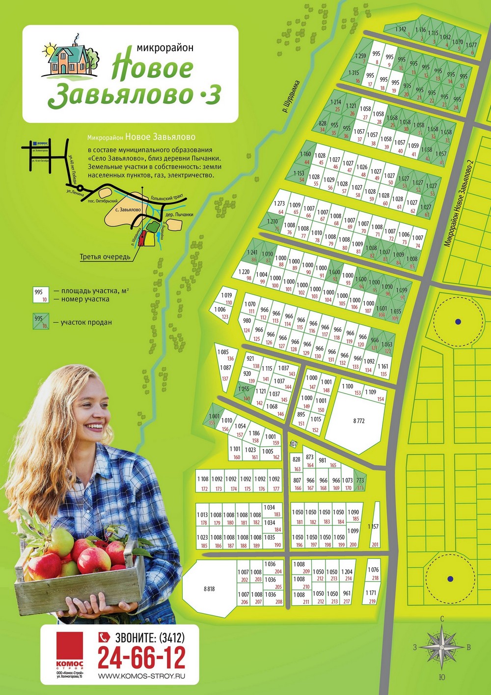 Участки третьей очереди микрорайона Новое Завьялово с запада граничат с лесом, с востока — с участками второй очереди микрорайона. Всего в третьей очереди 200 участков по 8-13 соток.