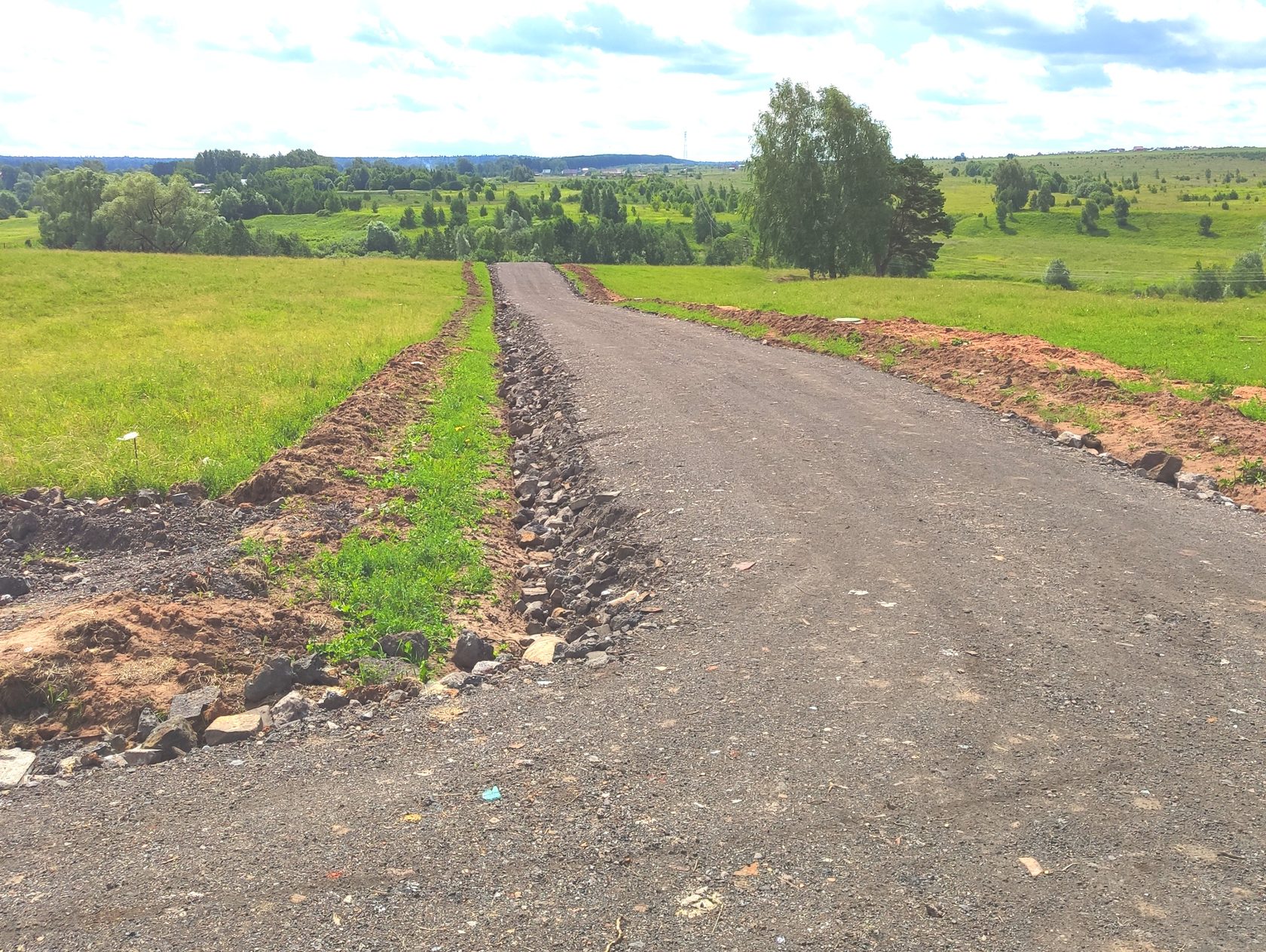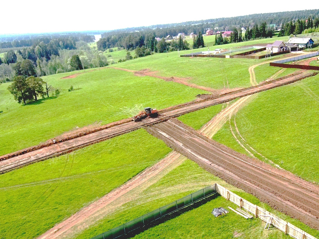 В качестве дорожного покрытия в микрорайоне используется шлаковый щебень с послойным уплотнением вибрационным катком.